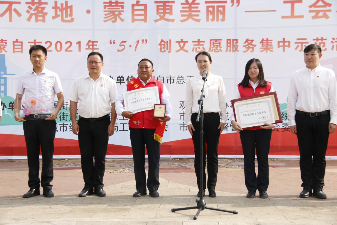 4月30日,蒙自市總工會在南湖廣場開展“煙頭不落地·蒙自更美麗”志愿服務(wù)集中示范活動(dòng)暨“全國模范職工小家”、“全國優(yōu)秀工會工作者”頒獎(jiǎng)儀式,...